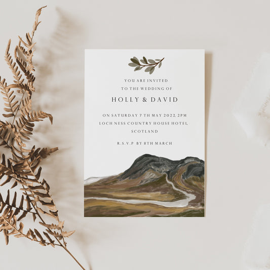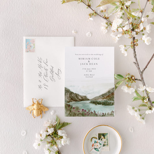 Summer in the Scottish Highlands Watercolour Wedding Invitation