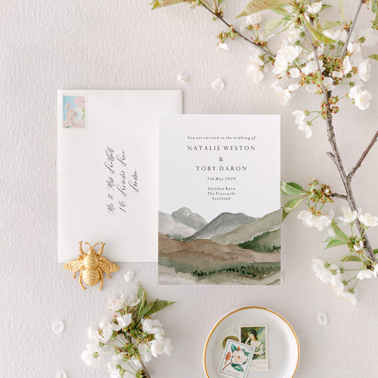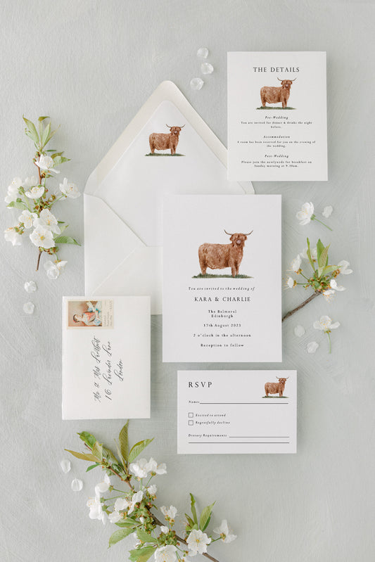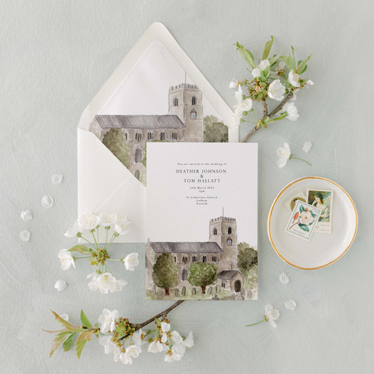 Custom Venue Portrait Wedding Invitation + Envelope Liner